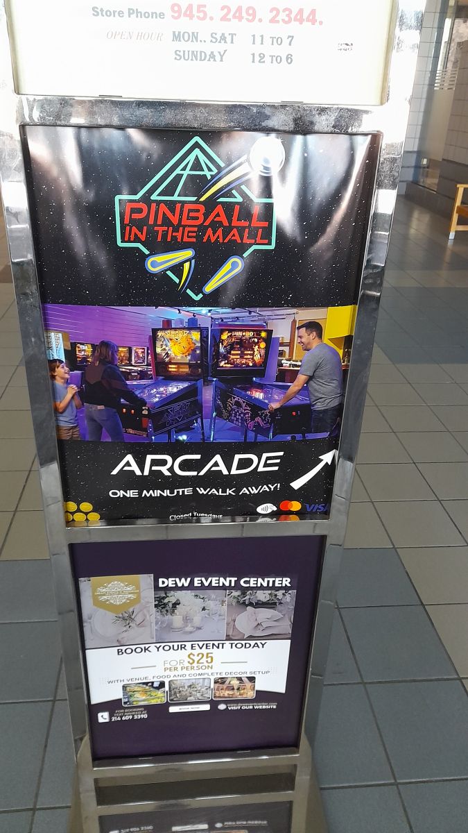 Thursday, March 19: Following breakfast, Martin, Marcel, and I headed to The Vista Mall in Lewisville, TX, to visit Pinball In The Mall. This is an arcade with mostly pinball machines, but there are also video games. Jim Bu and his wife, Cindy, run the arcade—very nice people. The photos below speak for themselves. Note that about a dozen games have been removed from the location to appear at the upcoming Texas Pinball Festival. So, usually there are more games to play.